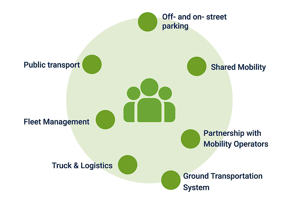 Smart Mobility is a part of the complete Smart City concept of a city. It refers to an innovative way of city transportation that is safer, more efficient, and eco-friendly, offering solutions that include car-sharing, bike-sharing, ridesharing, EV charge (Electric Vehicle), public transportation, commercial fleet management and, of course, smart parking.